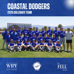 The Coastal Dodgers Collegiate team under the guidance of Head Coach Steve Hardesty and assistant coaches Bob Fystro and Alex Hoover competed at a high level throughout the summer season with many great team and personal highlights. The Dodgers finished atop the North Division in a heated battle versus the Santa Maria Reds completing the regular season with a 12-4 divisional record. Winning the south for the 3rd consecutive year were the Malibu Marlins with a 9-5-1 record. In a back-and-forth affair, the Marlins defeated the Dodgers 7-4 to win their first Golden Coast Collegiate League Championship. The Dodgers have now played in three consecutive Golden Coast Collegiate League Championships, winning the league title during the summer of 2024.